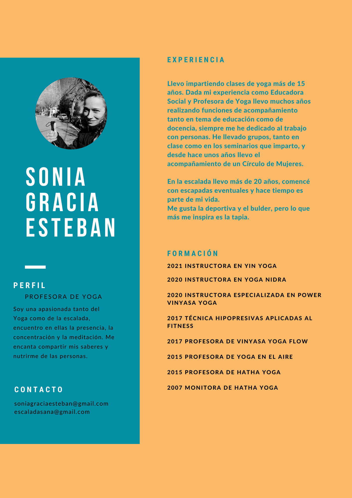 Con el mismo compromiso en el yoga en la escalada y en su labor como educadora social.  Sonia aporta disciplina, entrega y organización en su vida para llevar a sus pasiones la mejor versión de si misma.